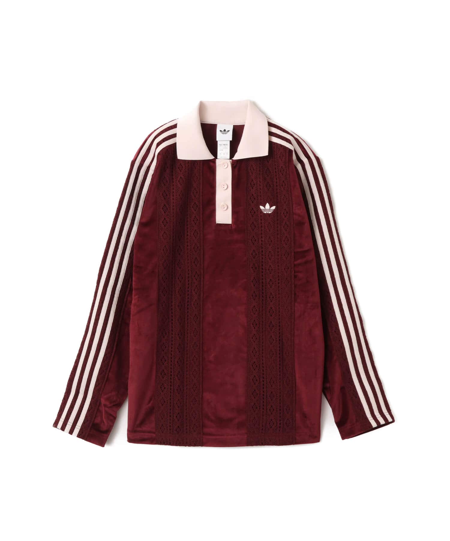 アイコニックなトレフォイルの刺しゅうとスリーストライプスのテープが、adidasのヘリテージを体現している。フラットニットの襟と3つボタンのフロントが、さりげない品格を添え、さまざまな場面で活躍する。