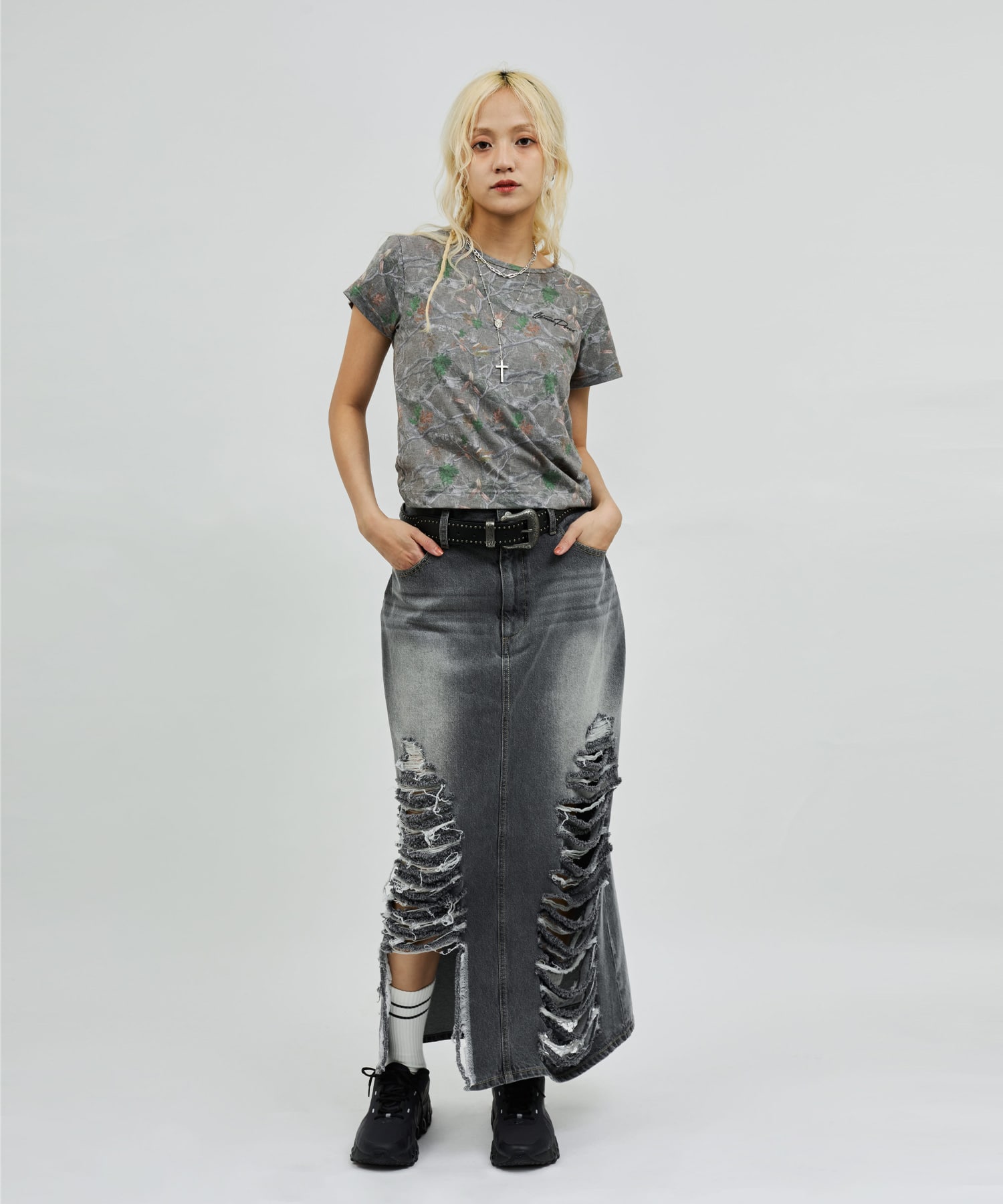 atmos pink Damaged Long Skirt BLACK