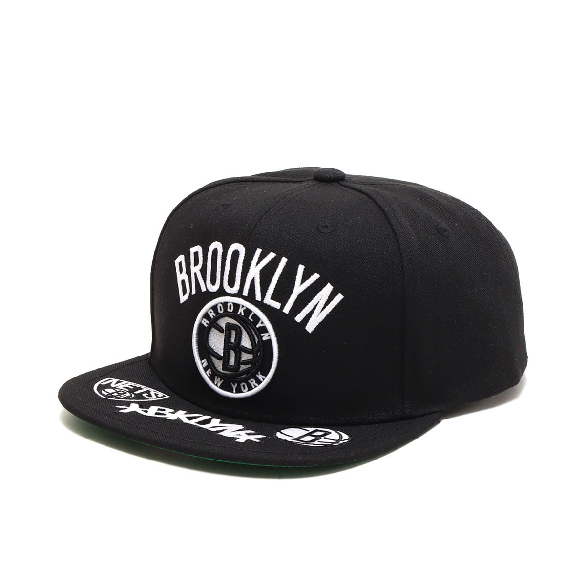 ブルックリン・ネッツのロゴ刺繍をフロントとブリムに散りばめたキャップ。ベースはシンプルなブラックにすることで、鮮やかな刺繍がより引き立ちます。フラットブリムなので好みにアレンジも可能。スナップバックで簡単にサイズ調整して着用できます。目を惹く存在感のあるデザインで、コーディネートのアクセント使いにもぴったりのアイテムです。