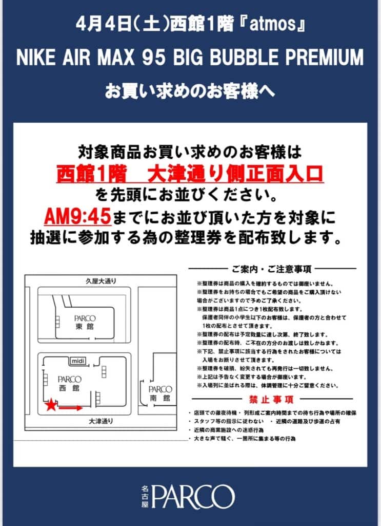 4/4(Sat)【NIKE AIR MAX 95 BIG BUBBLE PREMIUM】店頭抽選販売方法について